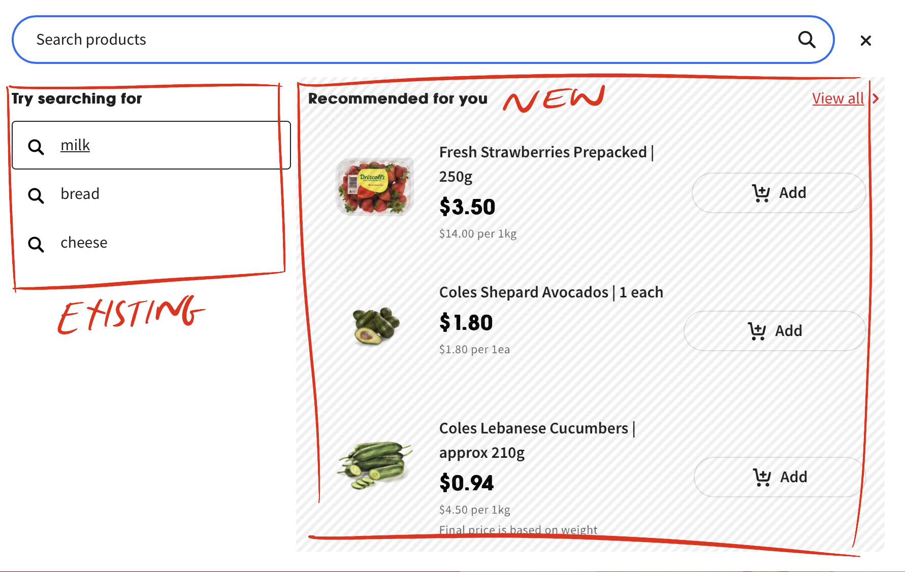 The team had a request for the established product search feature on coles.com.au to include items that a customer had bought previously.
