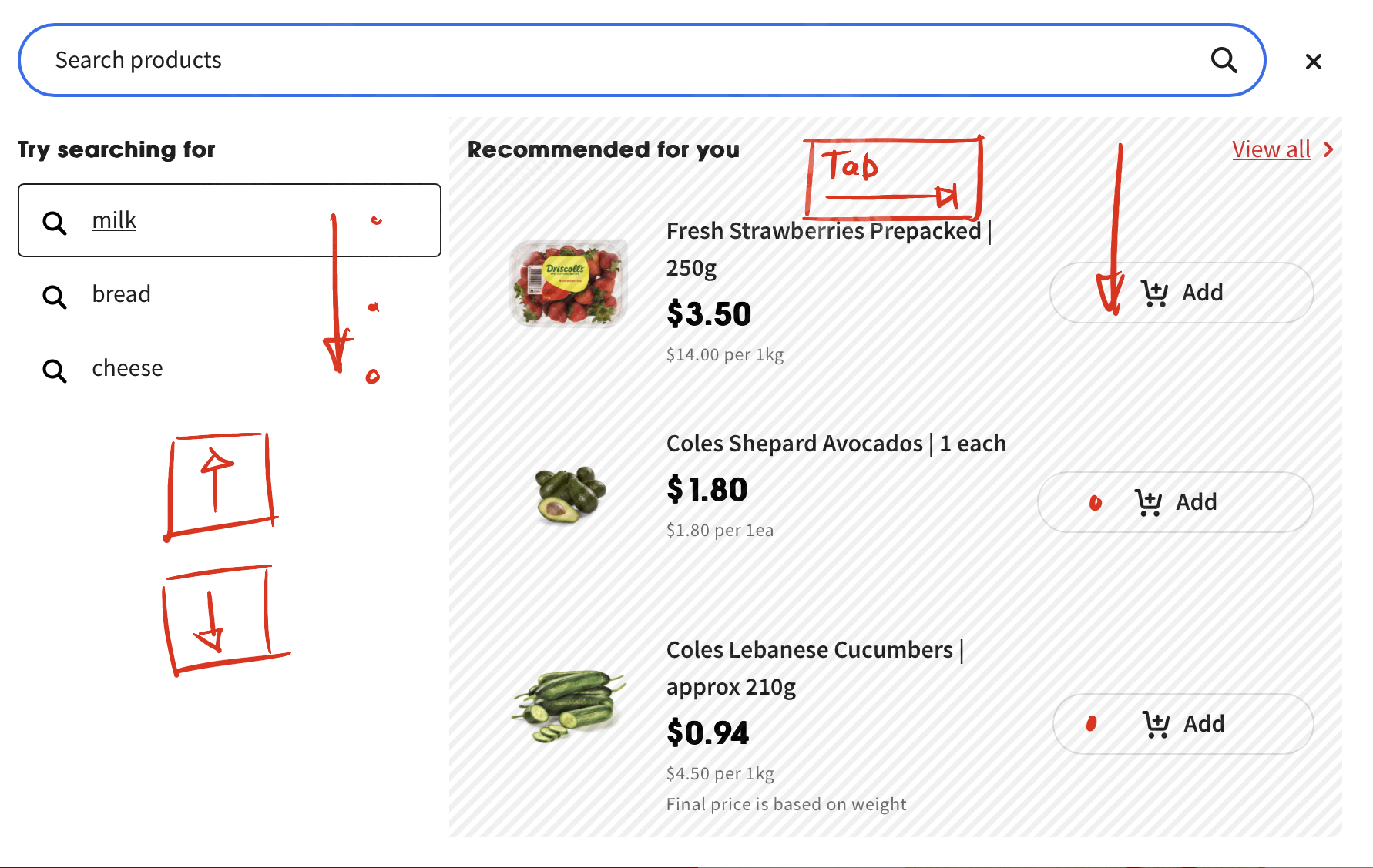 Combining Tab and Arrow key navigation for Australian supermarket Coles