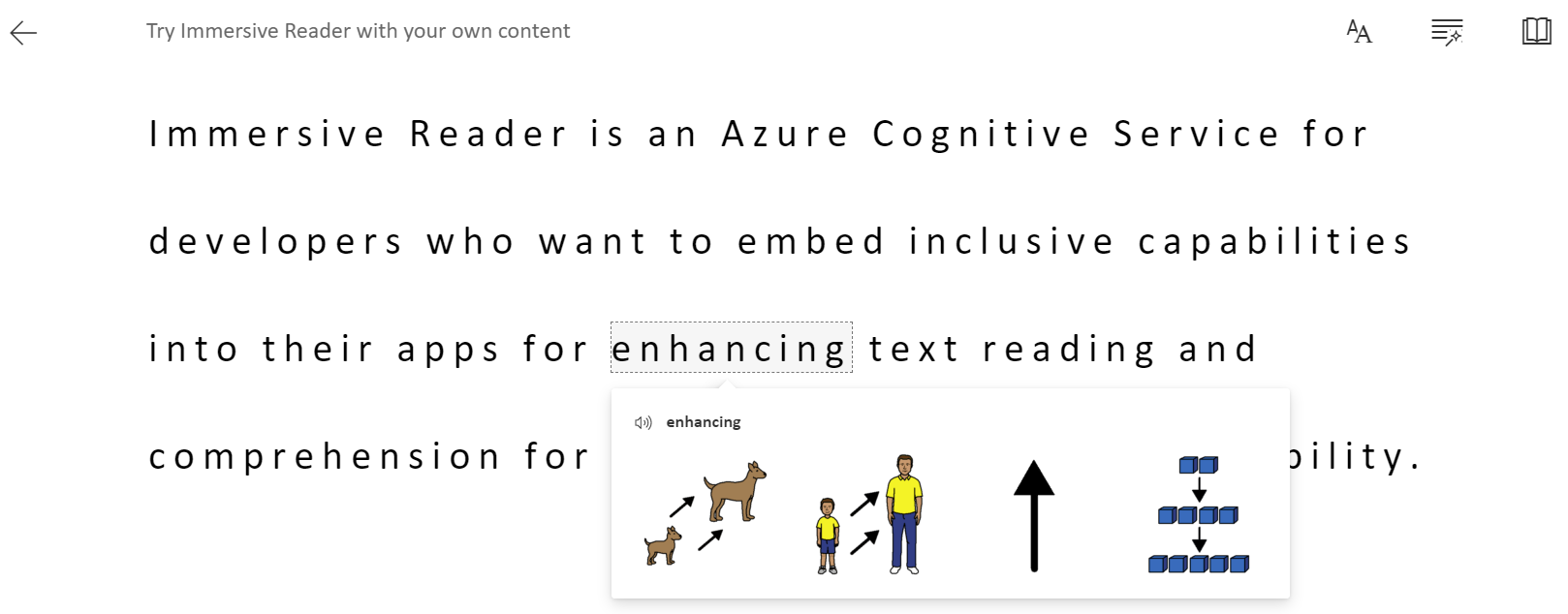 Immersive reader is a Microsoft Azure cognitive services tool to help a user's ability to understand content on a page.